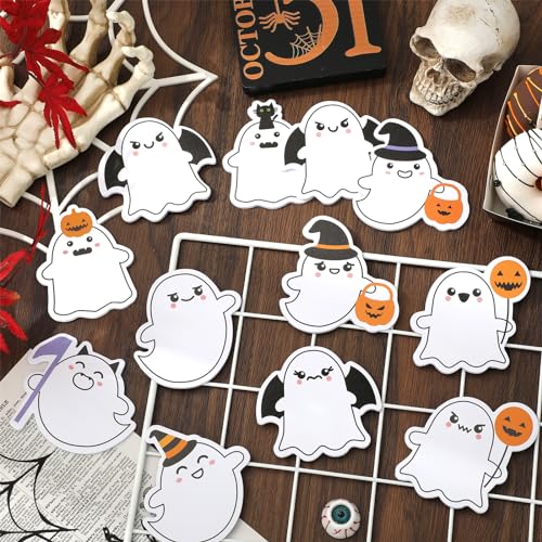 Whaline 24 Packs Halloween Sticky Notes Cute Boo Ghost Notepads 12 Designs Trick or Treat Reminder Memo Pads for Annotating Books Office Study Supplies