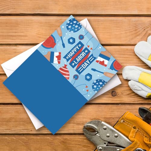 【Package Includes】 24 pcs labor day greeting cards(with 6 designs) and 24 pcs white envelopes with a water-activated adhesive seal.